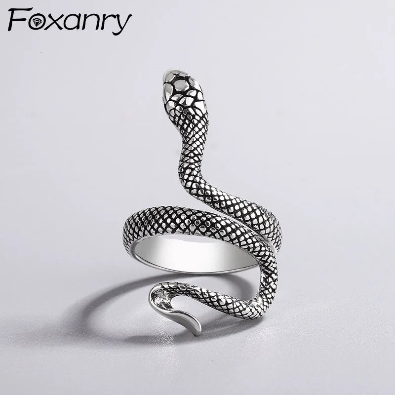 FOXANRY Silver Snake Ring – Vintage Punk Winding Design, Couples' Fashion Jewelry for Parties