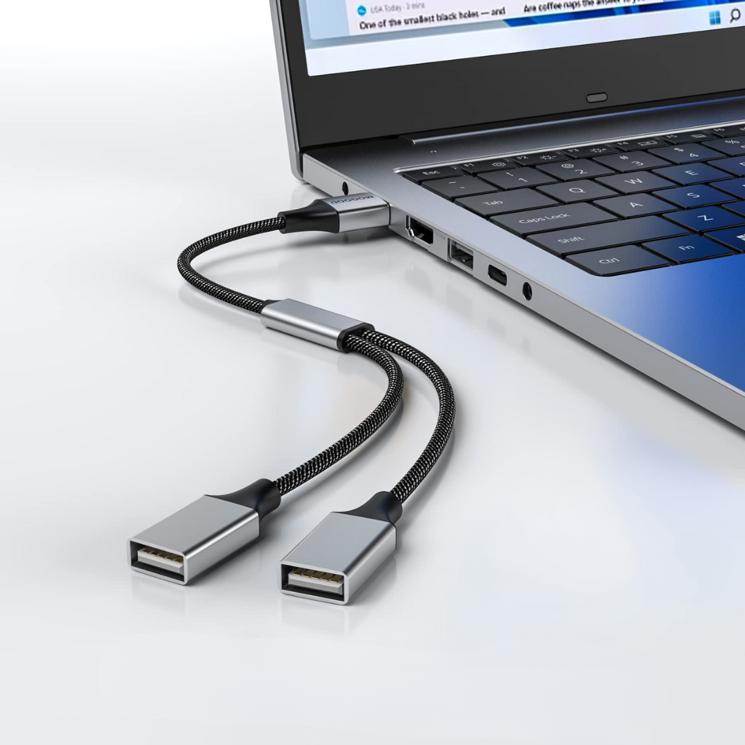 High-Quality USB 2.0 Double Splitter Adapter Cable – One to Two Female Ports, USB 2 Male Power Extension Cable