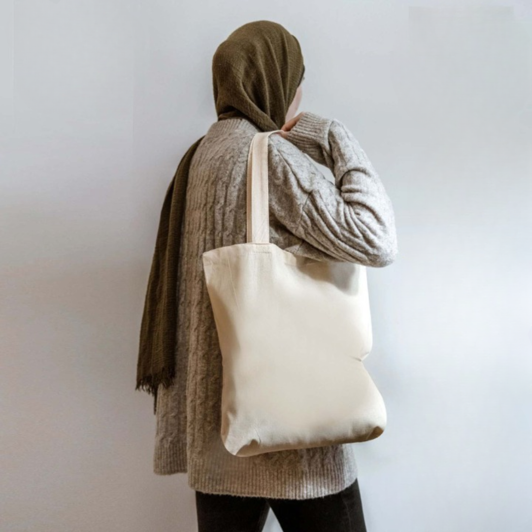 Large Capacity Canvas Shoulder Bag - Eco-Friendly Reusable Tote in Beige & Black