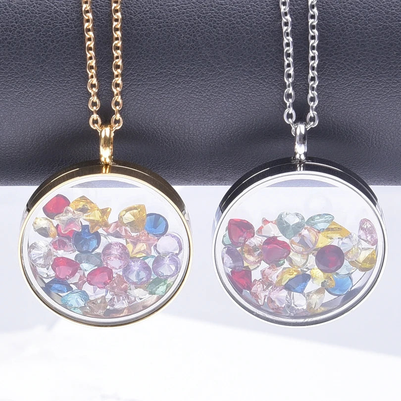 25/30mm Round Glass Locket Pendant Necklace – Long Stainless Steel Chain for Men and Women, Stylish Accessories and Jewelry