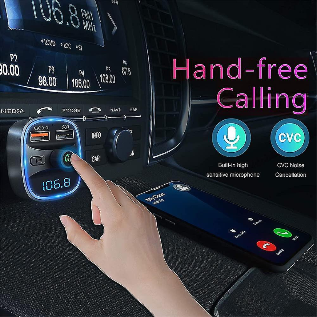 Bluetooth 5.0 Car FM Transmitter - Dual USB MP3 Player & 18W Type-C Charger with Handsfree QC3.0