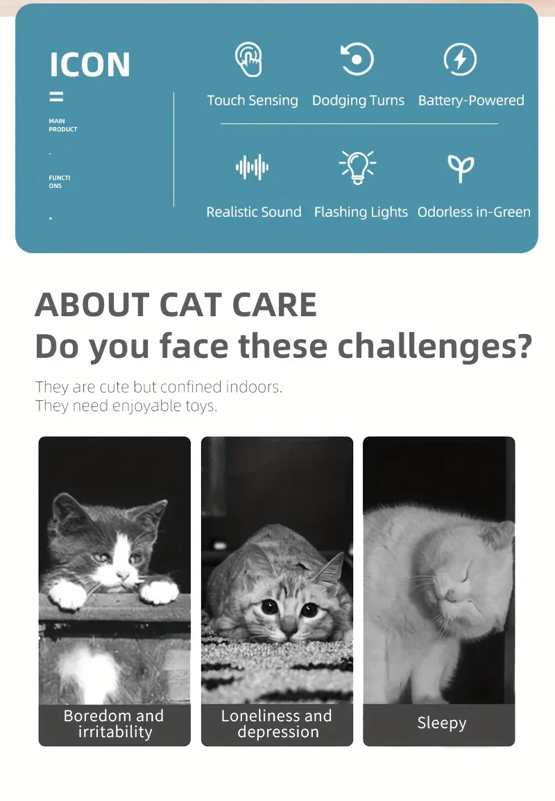 【Let the cat run and play】Imagine it! While sitting on the couch, you don't have to move and you can still play with your cat with fun remote-controlled cat toys and run around the house chasing them.